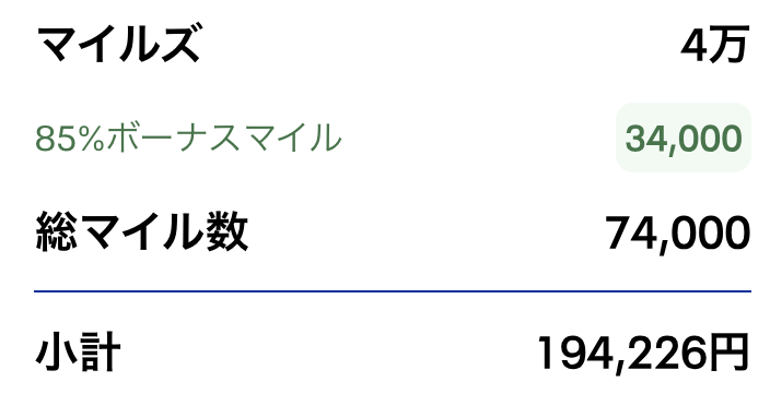 ちなみに、40,000マイル購入の金額は・・・