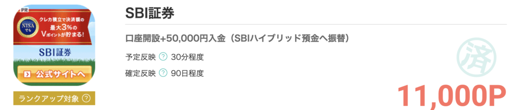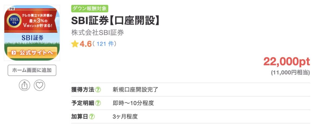 こちらは「11,000ポイント」になっています。やり方はハピタスと同じなので、モッピーで口座開設したい方もご参照ください。