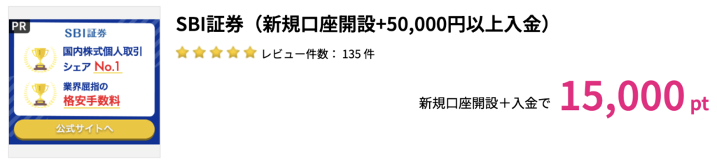 - ややこしいSBI証券口座開設です15,000円分のポイントが獲得できます。