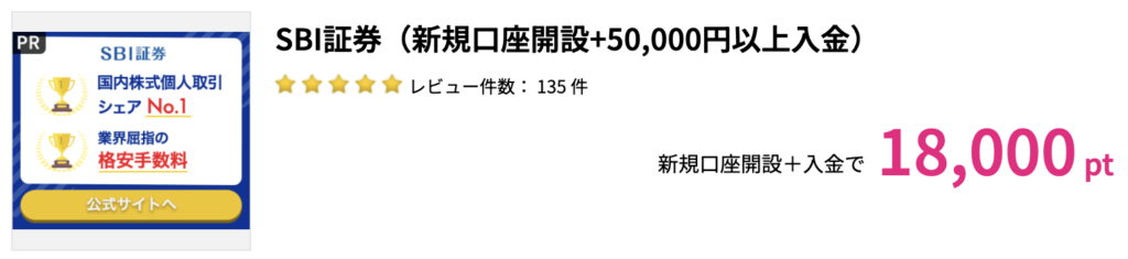 - ややこしいSBI証券口座開設です18,000円分のポイントが獲得できます。